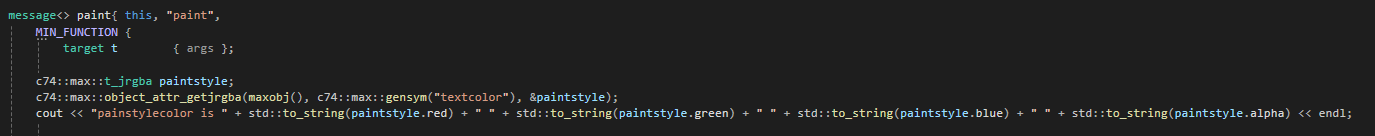 I spent some time with this. By declaring an arbitrary, empty t_class* c and a few other variables I was able to get the relevant functions to pass the linter at least. But I wasn't able to return a color that I could use inside MINs paint function.