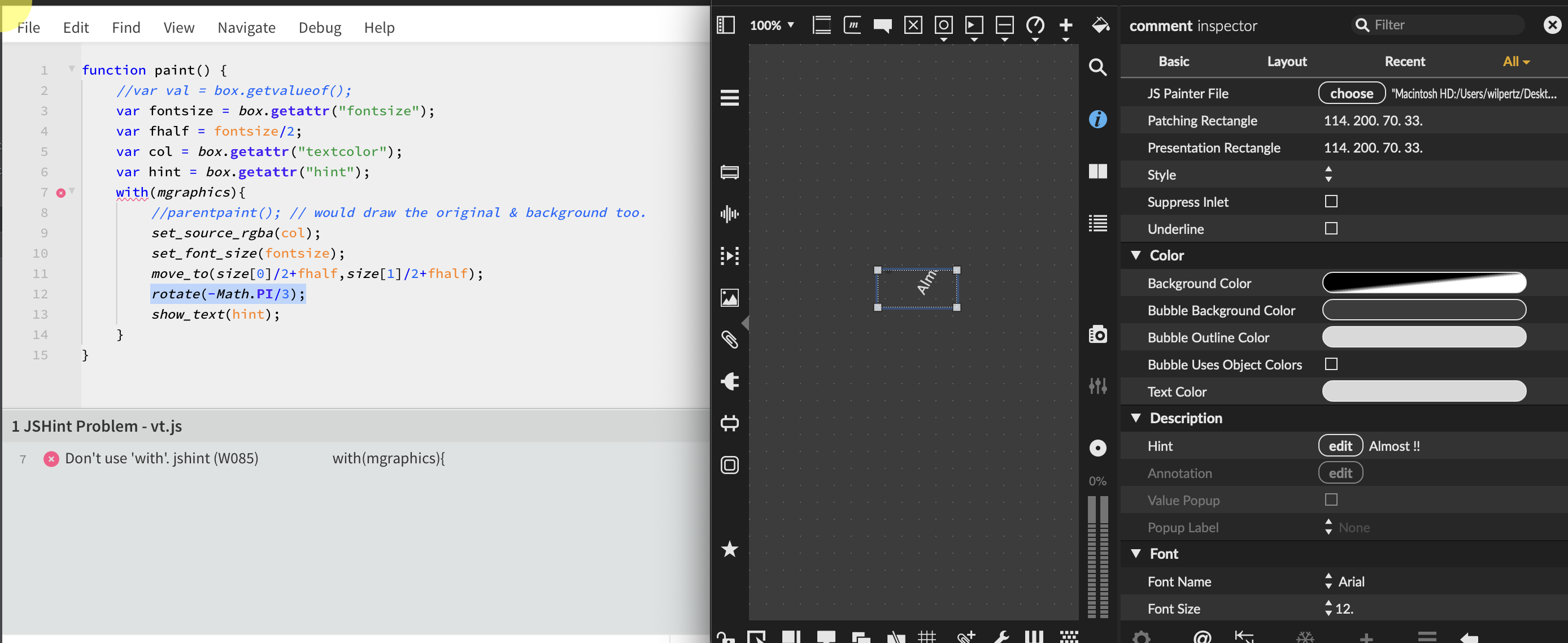 e) Copy paste the upper code into a textfile and name it, lets say: jspainter_rotate_hint.js, save,