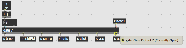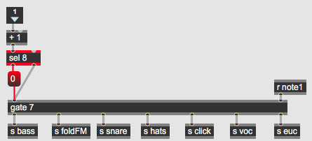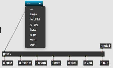 I have built in a mute line youll need to patch msp instruments into so if you scroll between programmed sequencers using preset/ pattrstorage avoids audio spikes.
