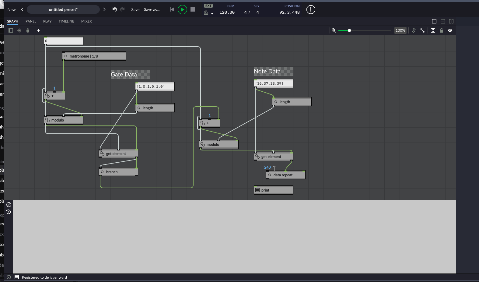 In loomer architect , the output goes into the 'data repeat 'set to 240 ( expressed in tick ) which equals 4 repeats .