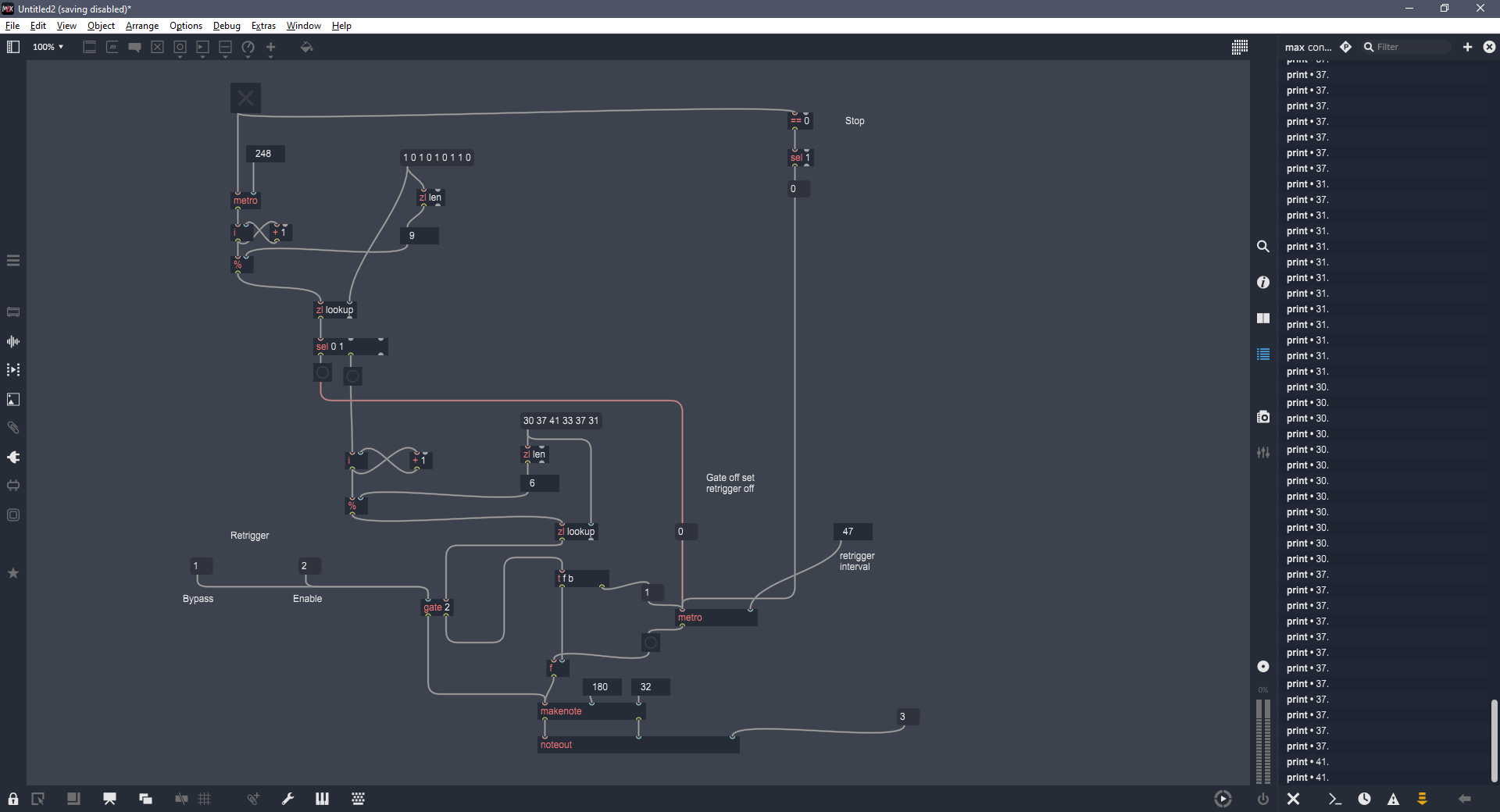 Using the gate data from the first zl lookup ( when 0 = note off ) , to turn off the retrigger metro