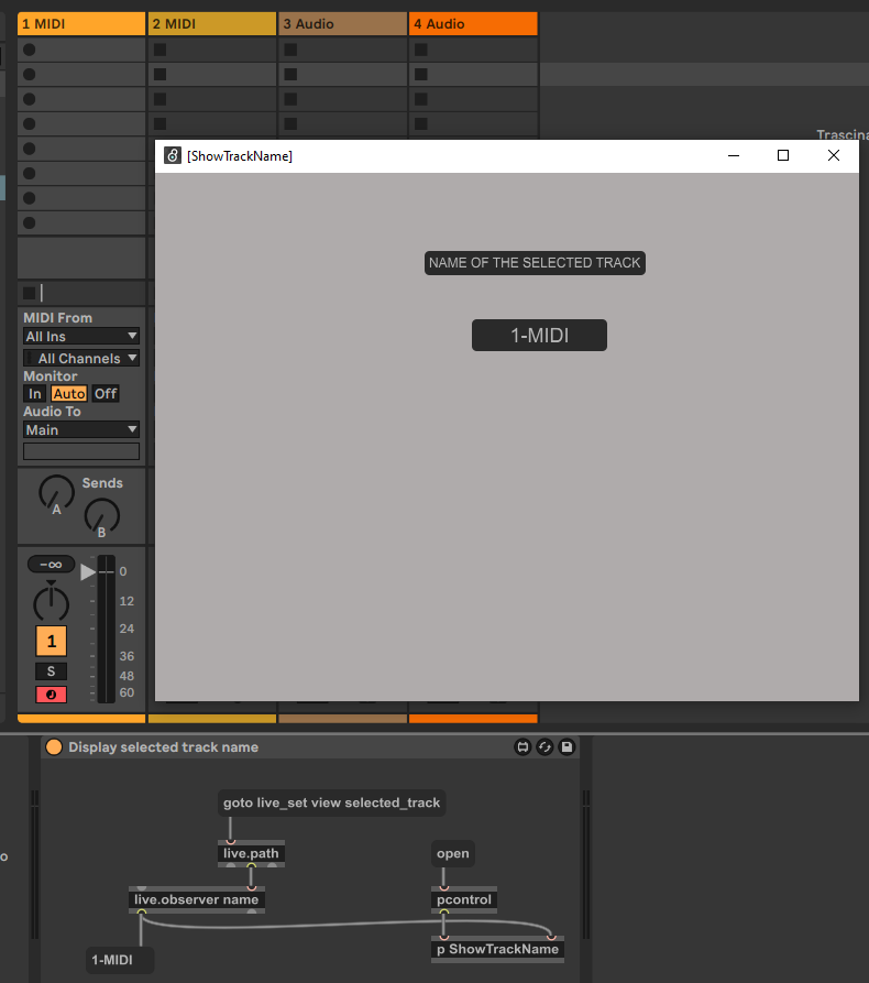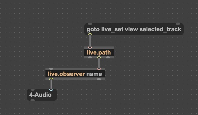 Hello everyone, I'd like to display the selected track name using live.observer so that the displayed text is automatically updated each time the selected track changes in Ableton Live.