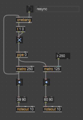 I’m experimenting with polyritmic in my patch and I’m having a problem synchronizing metro objects.