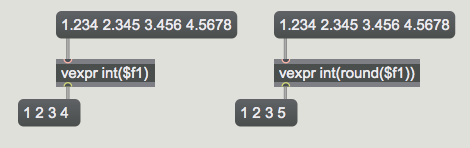Exactly. That's what I wrote. The outcomes of round, floor, and ceil are floats and need to be converted to int. Something you show in your last example with vexpr, but not in the first one I responded to.