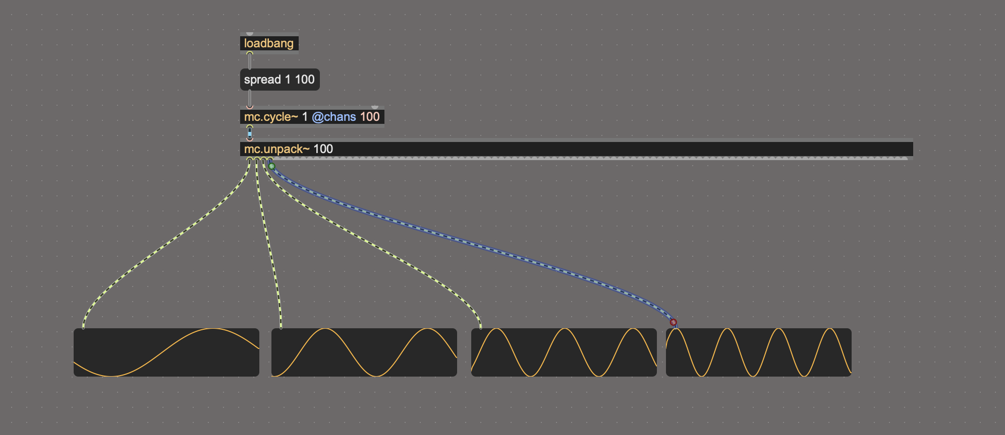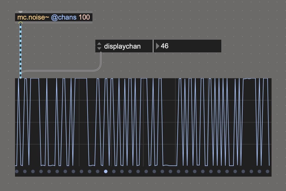 thanks for your replay. The displaychan attribute is very useful, but still don't allow the simultaneous visualization of all the channels (or at least a part of them toghether). I'm searching for an object that does the work of the multichannel "meter" (the one that pop up when your cursor step by a multichannel cable) .