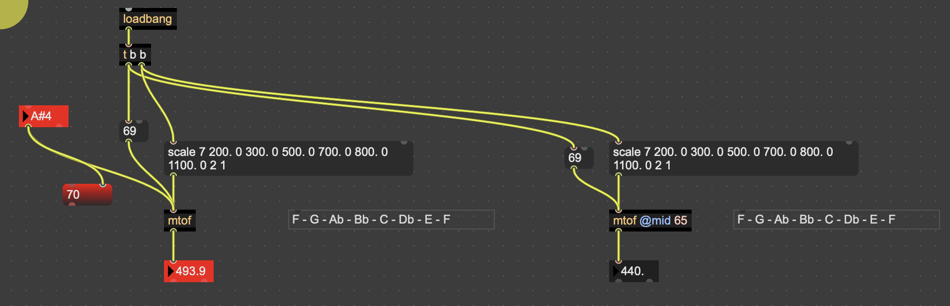 I watched videos about this and tested a lot but I obv lack some understanding. I got this patch I want to play with the Harmonic Minor Intervals. I'd like to have F as my 'root' note. However, why does sending a 69 MIDI note still give me 440 hz, while A is not part of the F Harmonic Minor scale?