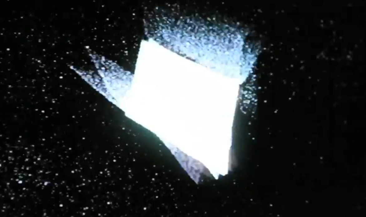 But prior to that, it looks to me like an osciloscope simulation (Amazing Max stuff has a video about how to make one) used to render 3D shapes (not sure how to do that), and/or there might be some kind od custom random dithering on top of that.