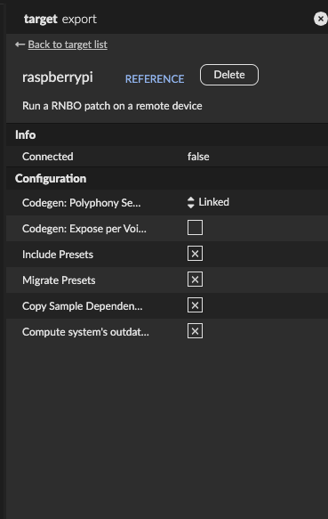 The Rpi 4B I am using does not show in the target export window. I manually added the address of the pi, but it still shows it as not connected. Wireless connection is otherwise working on the pi.