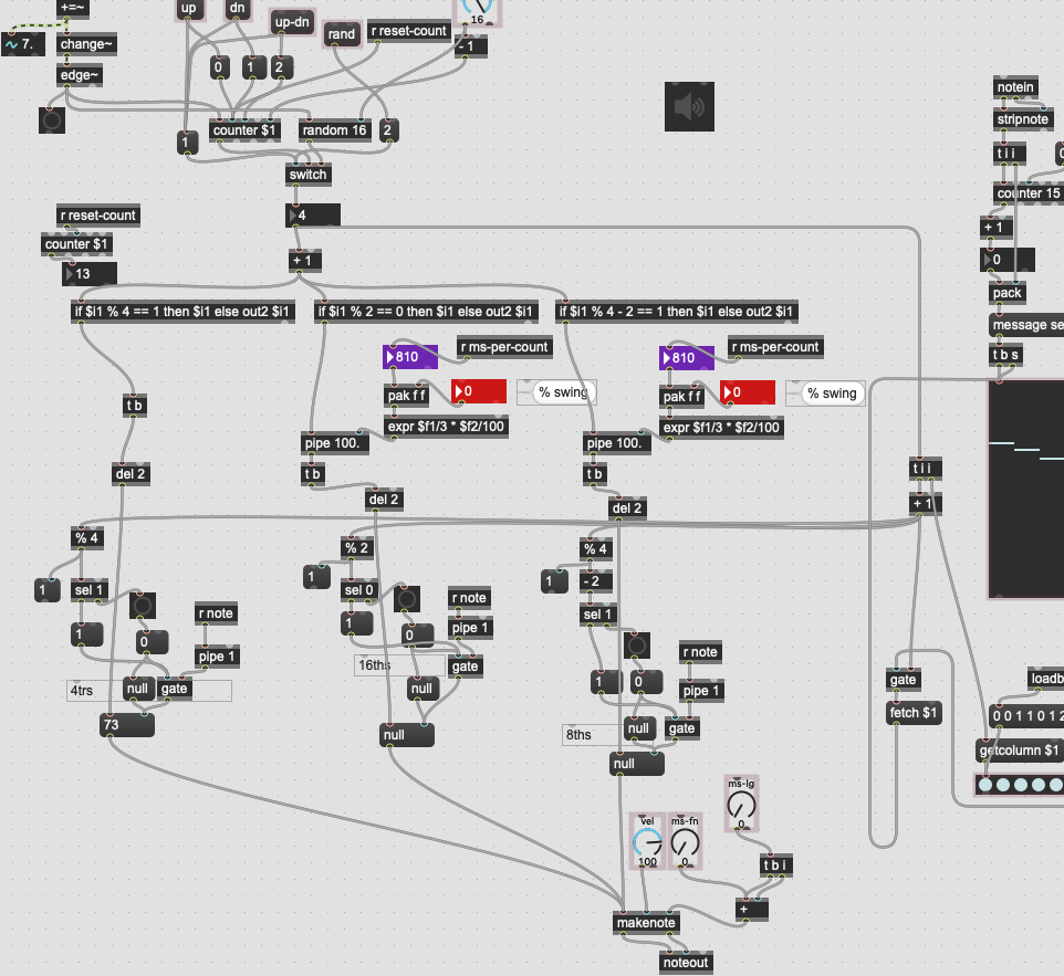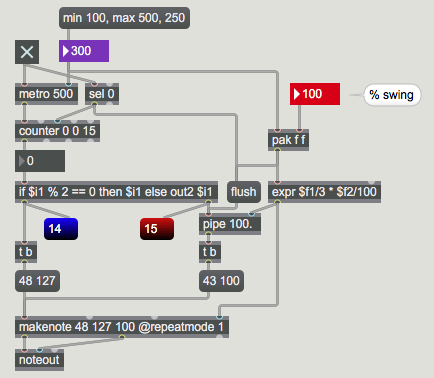 transport phasor~ subdiv~ swing~ what~ change~ edge~ counter noteout. hilarious.