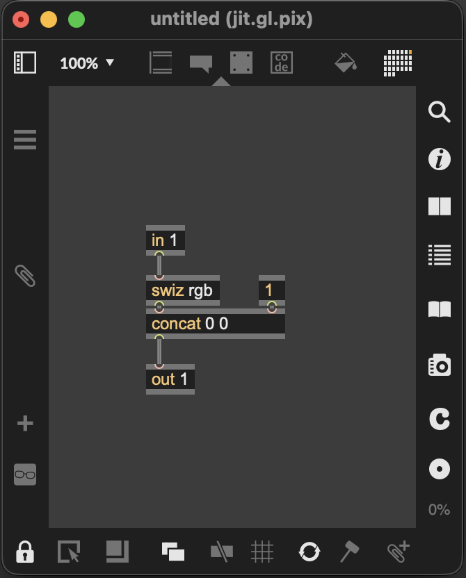 The 4 jit.pwindows in this patch show the expected results, both the Kalider-direct output and the "txKalid" texture output show the noisy Kalider colors. But, the jit.world window showing the 3d output of the "colorCrossfader" shader is not showing those Kalider texture colors, even though coded to do so.