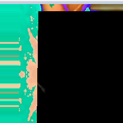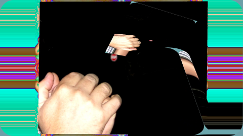 Upper Left detail above seems to show (some of) the "masked out" part of the meshwarpobject connected to the raw jit.movie texture output visible "on top of" the "masked in" part of the meshwarpobject connected to the noisy Kalidr texture output. The only Kalidr noise you see in the recording and this frame-grab is a tiny "border frame" of noise around the "raw" slideshow images instead of noisy Kalidr colors all the way out to the frame boundaries.