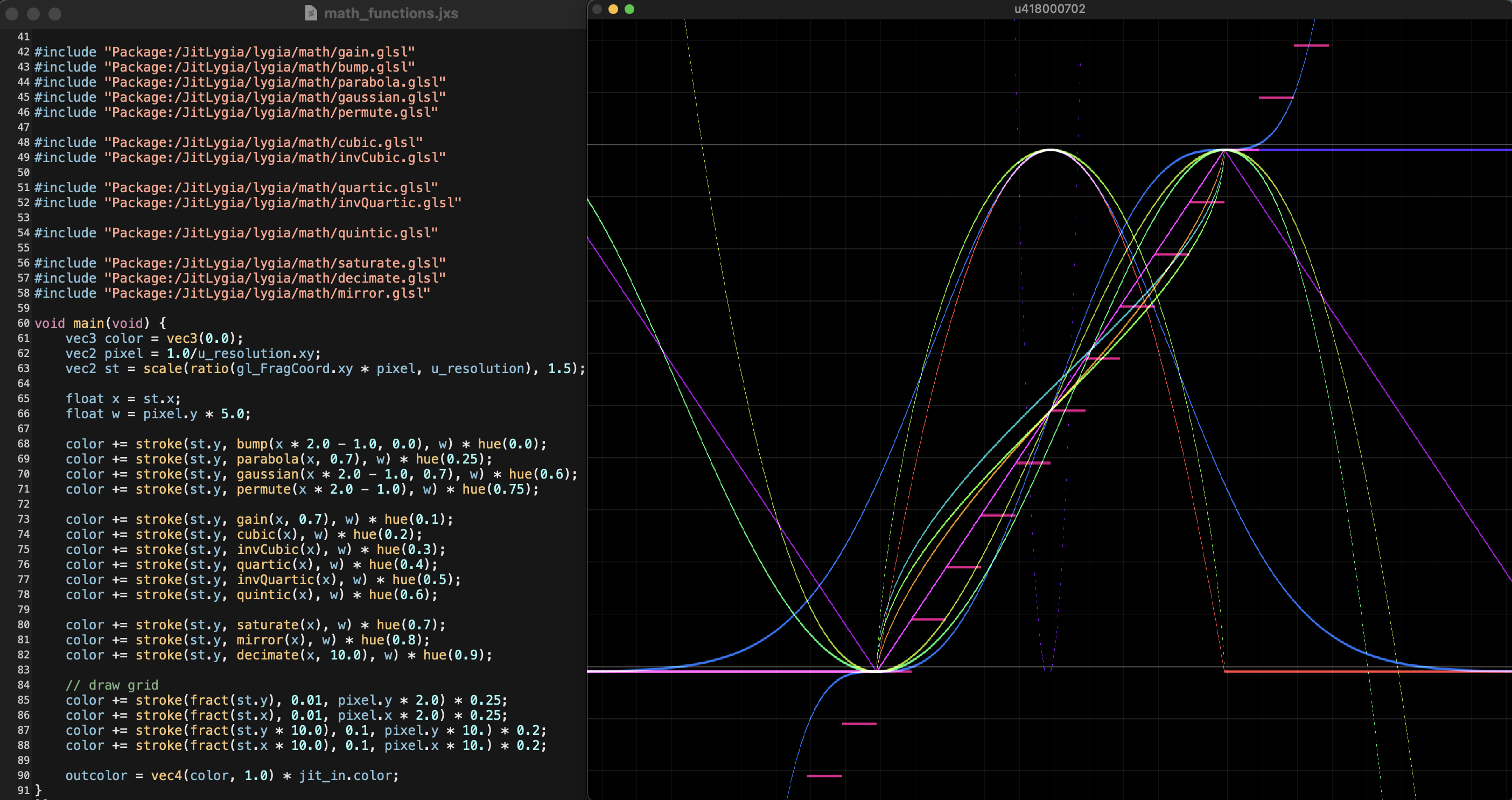 The LYGIA shader library is a large and growing library of reusable shader code including useful image processing, generative functions, data visualization, and much more. This package bundles LYGIA into Max package form, and includes a handful of JXS examples ported over from the LYGIA example set. With this package, you can easily use LYGIA code in your own Jitter shaders, enabled by support provided in Max 9.1 and above.