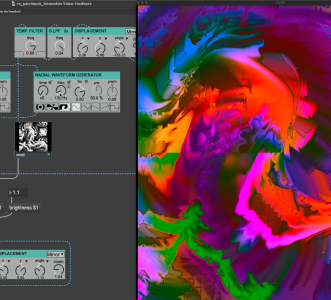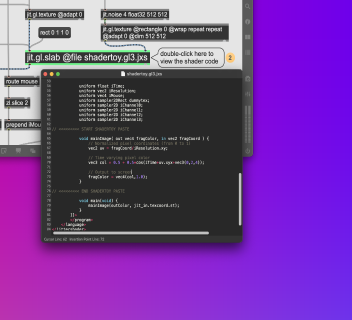 Start writing your own GLSL code with Jitter’s rich, interactive shader integration. Patch multiple fragment shaders together to make unique effects hard to achieve elsewhere.